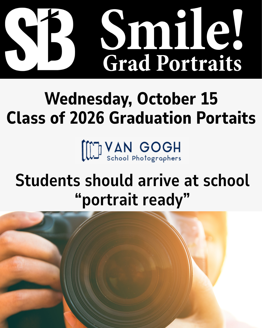 All 8th Grade students should arrive at school dressed for pictures. The students will be photographed in two poses: dress clothes and cap and gown (cap/gown supplied by the photographer). Students should avoid wearing shades of green, as they will be photographed against a green screen.