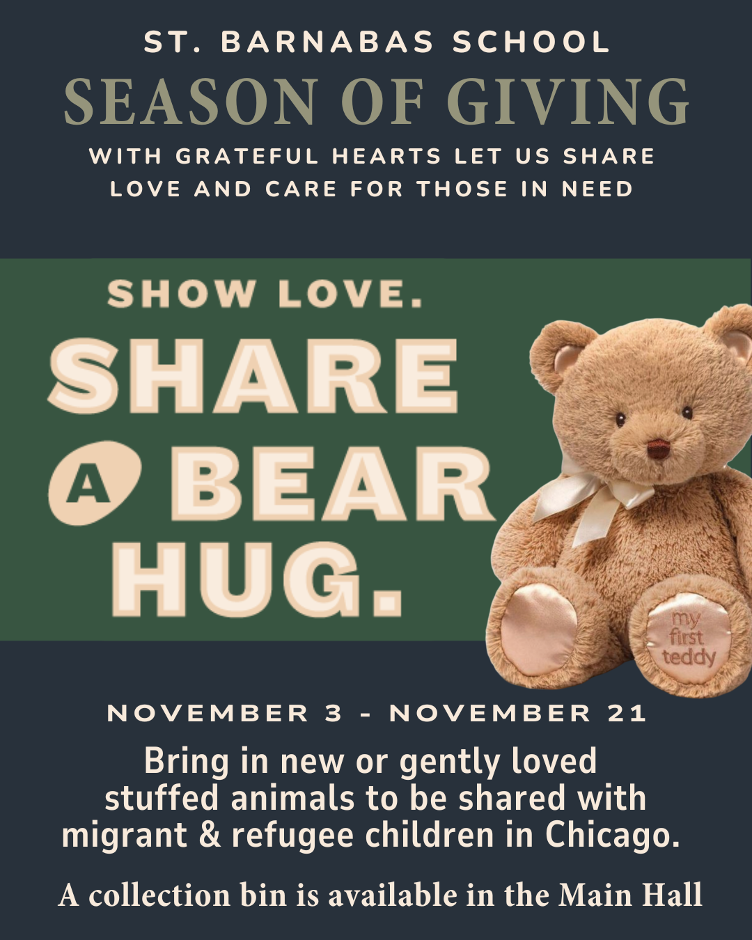 Donate new or gently loved stuffed animals to support the Share a Bear Hug organization.